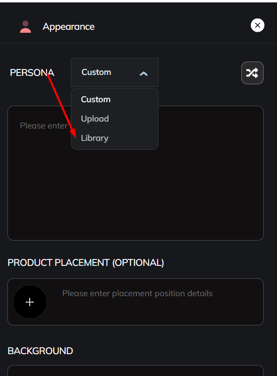 - Once you have selected the persona, you can edit the appearance and add a product.