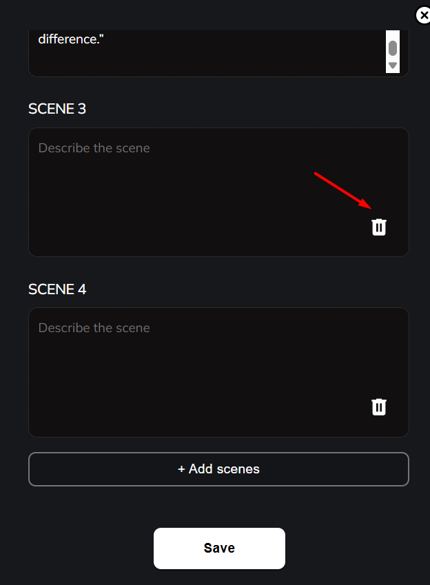 When you're done writing your scene descriptions, click Save to confirm and return to the main builder.
