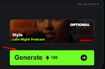 Note: When you click Generate, the system will deduct the number of credits shown next to the button.